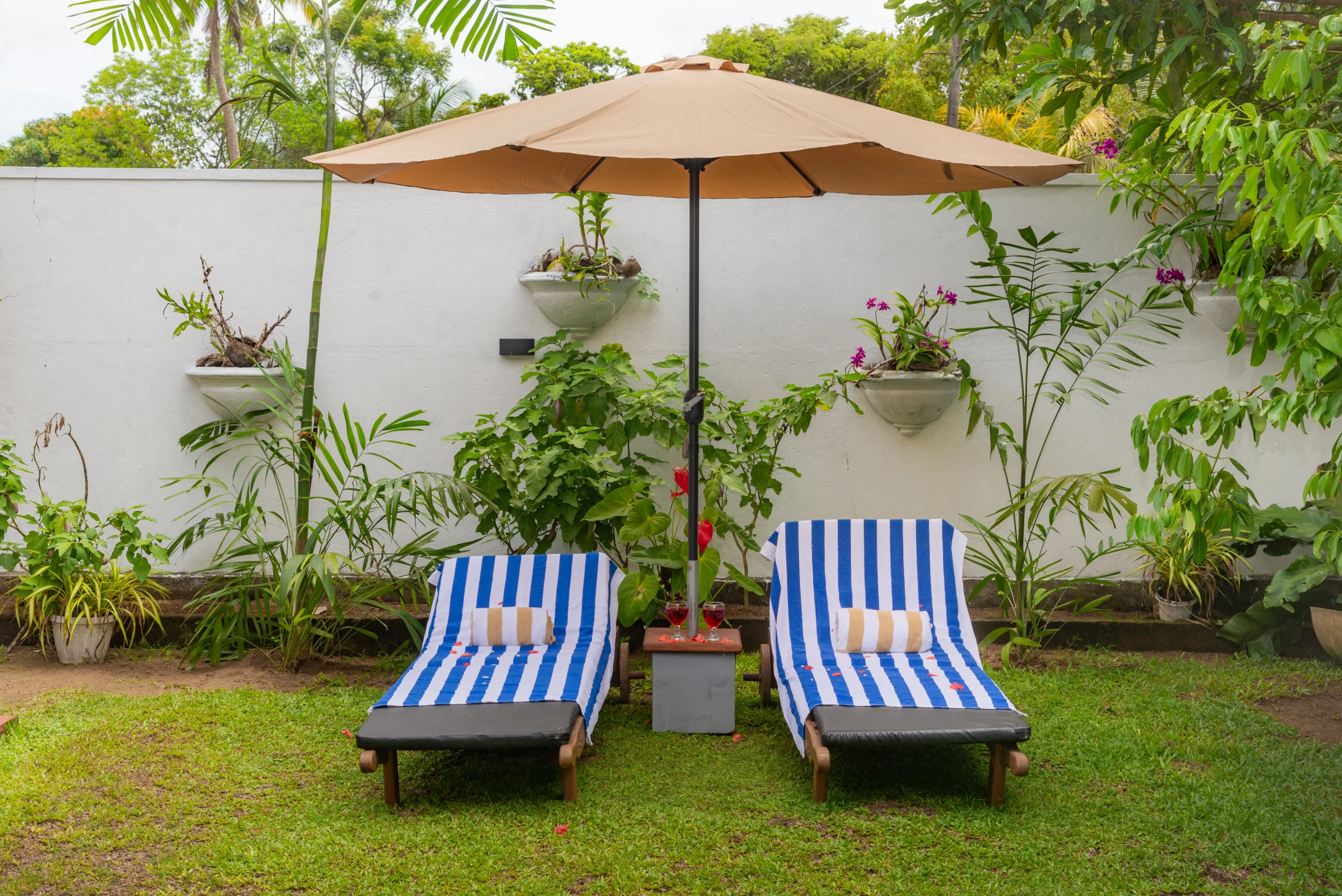 Use the open kitchen. It has an oven, gas stove, refrigerator, cookware and utensils. A washing machine is available. Outside, stretch out on the sun beds and enjoy the garden feel. We can arrange airport pick ups, local taxis and day trips on request. We can also help with nearby Ayurveda massage bookings.