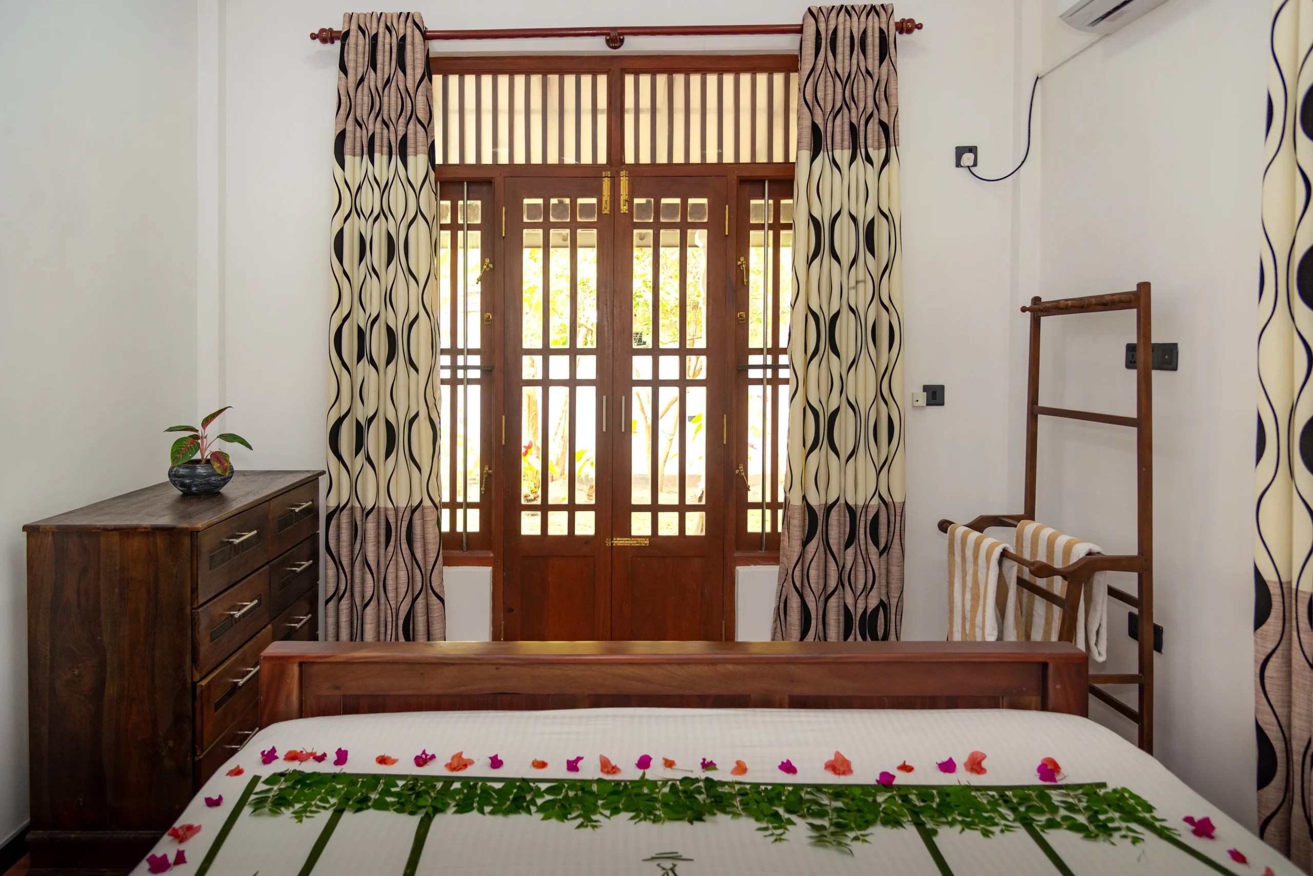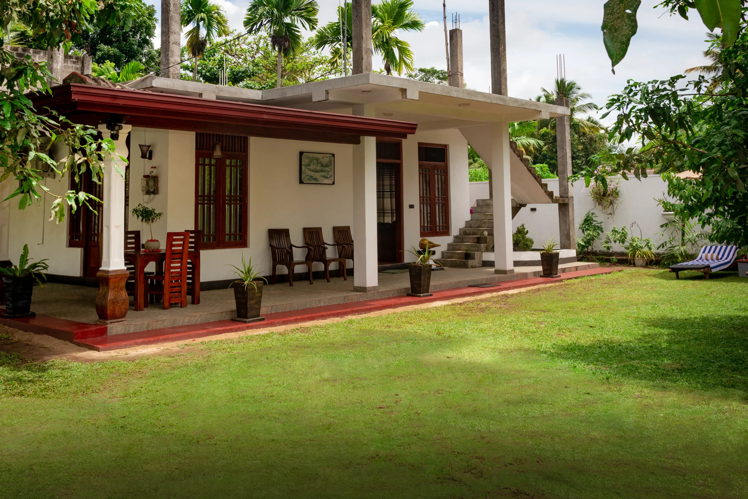 Villa 95 Ahungalla is a small and calm two bedroom villa in a quiet lane. The front area is simple and neat, with a garden feel and sun beds where you can sit and relax after a walk from the beach.